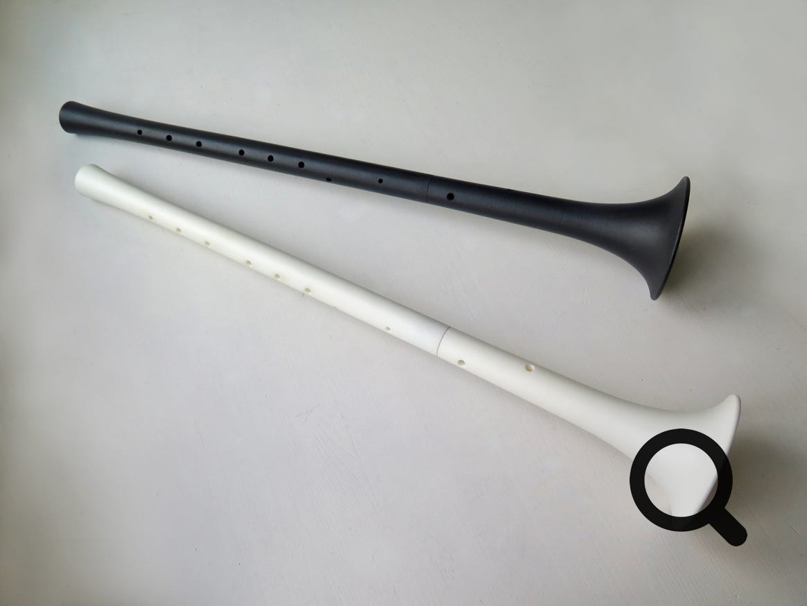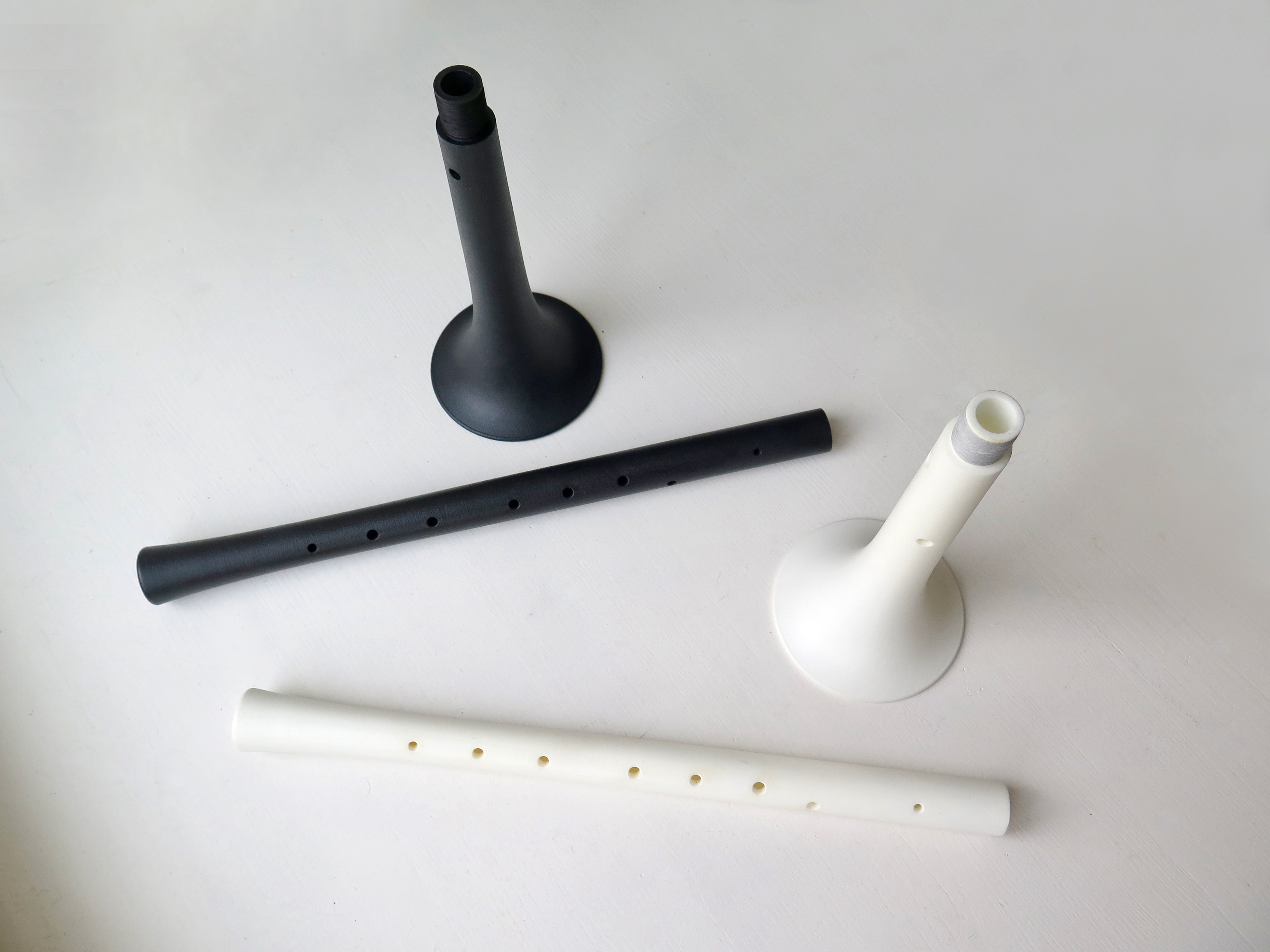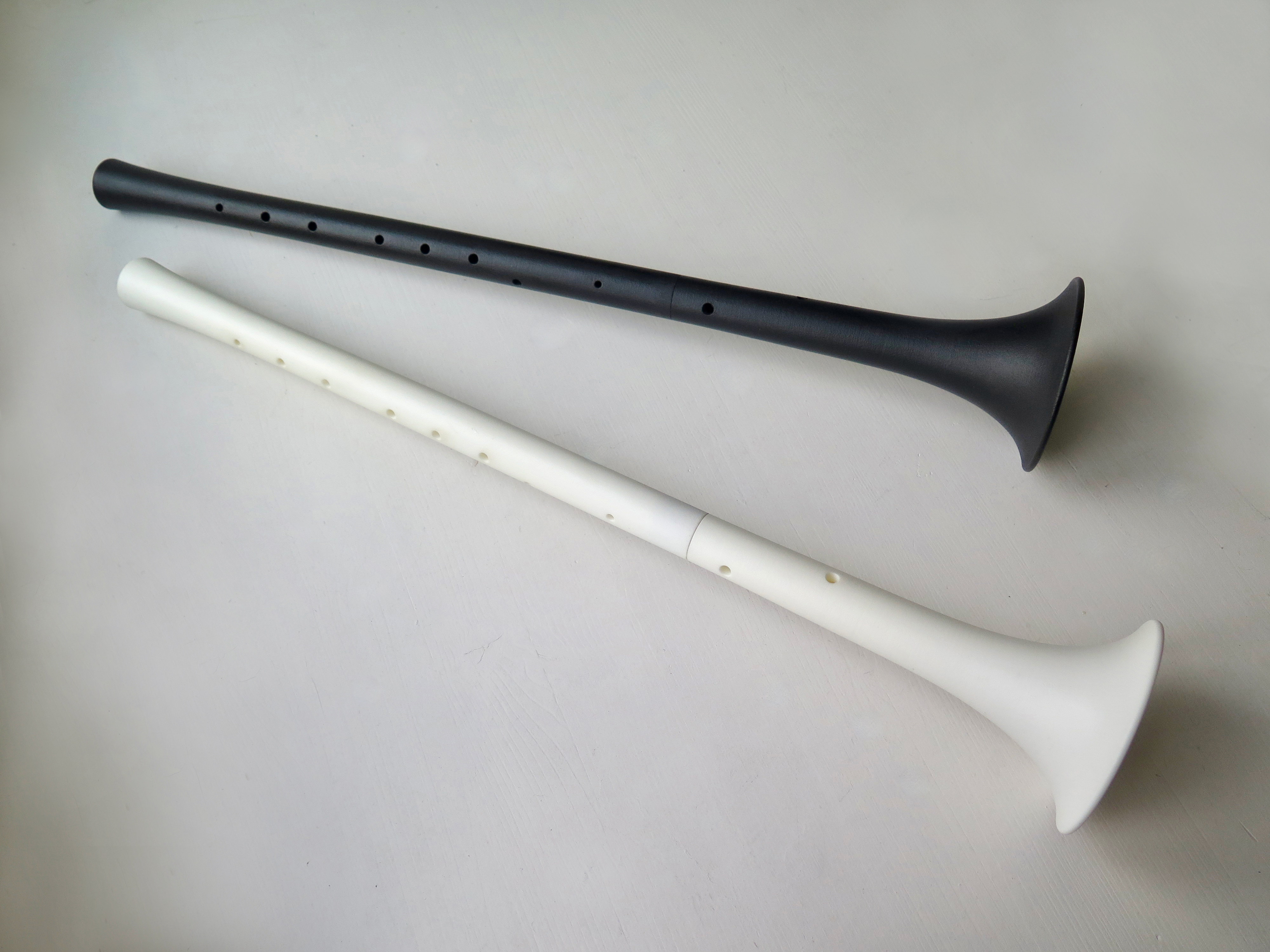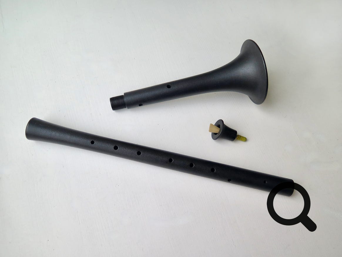 Our shawm model are made in two pieces with a joint, which is very practical to carry. The weight of the instrument, by clever use of 3D-printed possibilities, is also considerably lighter than most traditional wooden versions, which notoriously increases playing comfort.