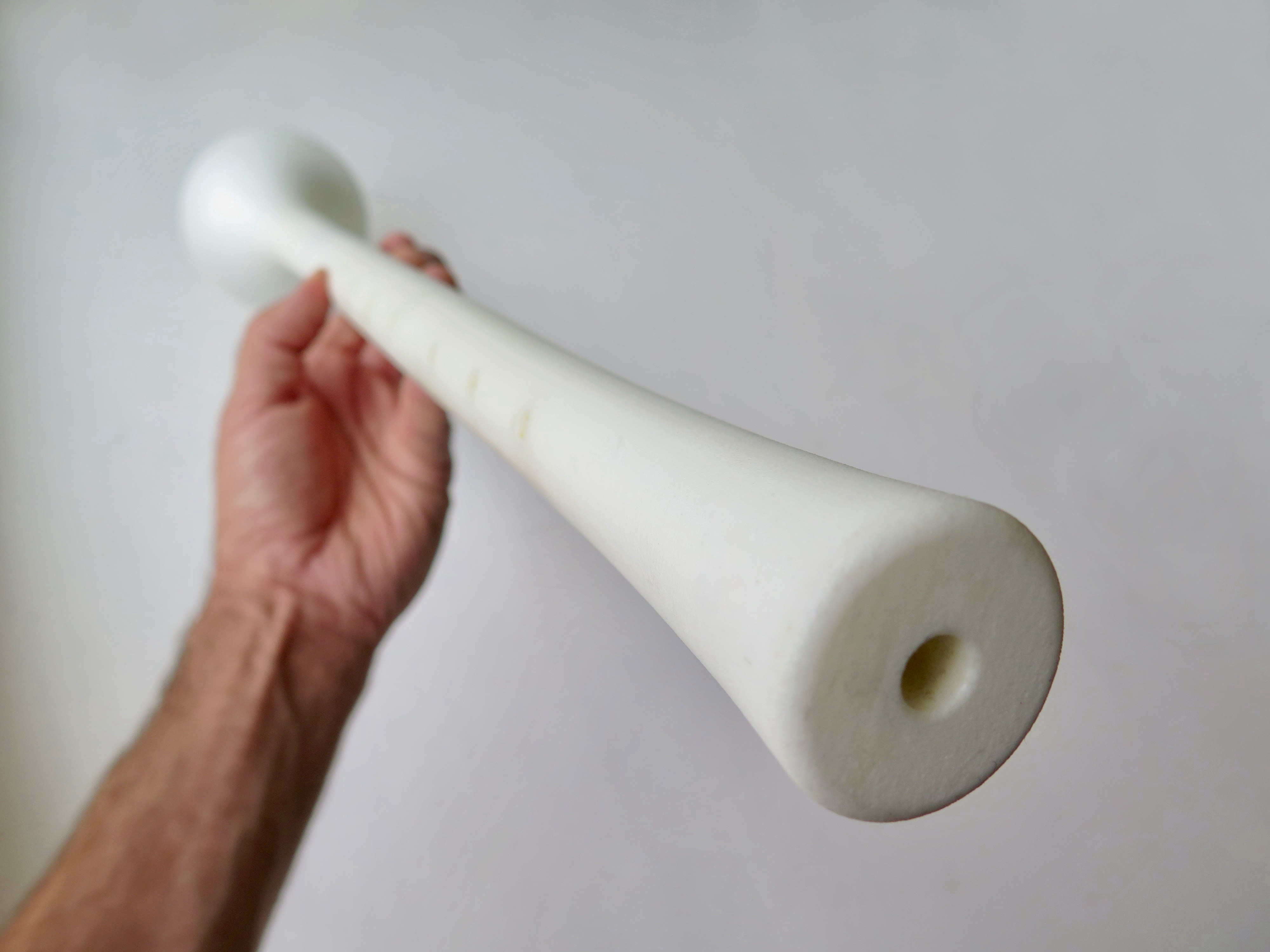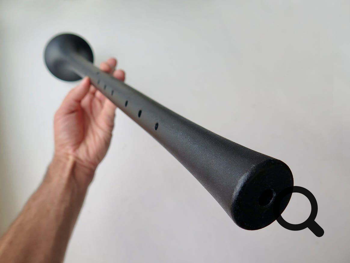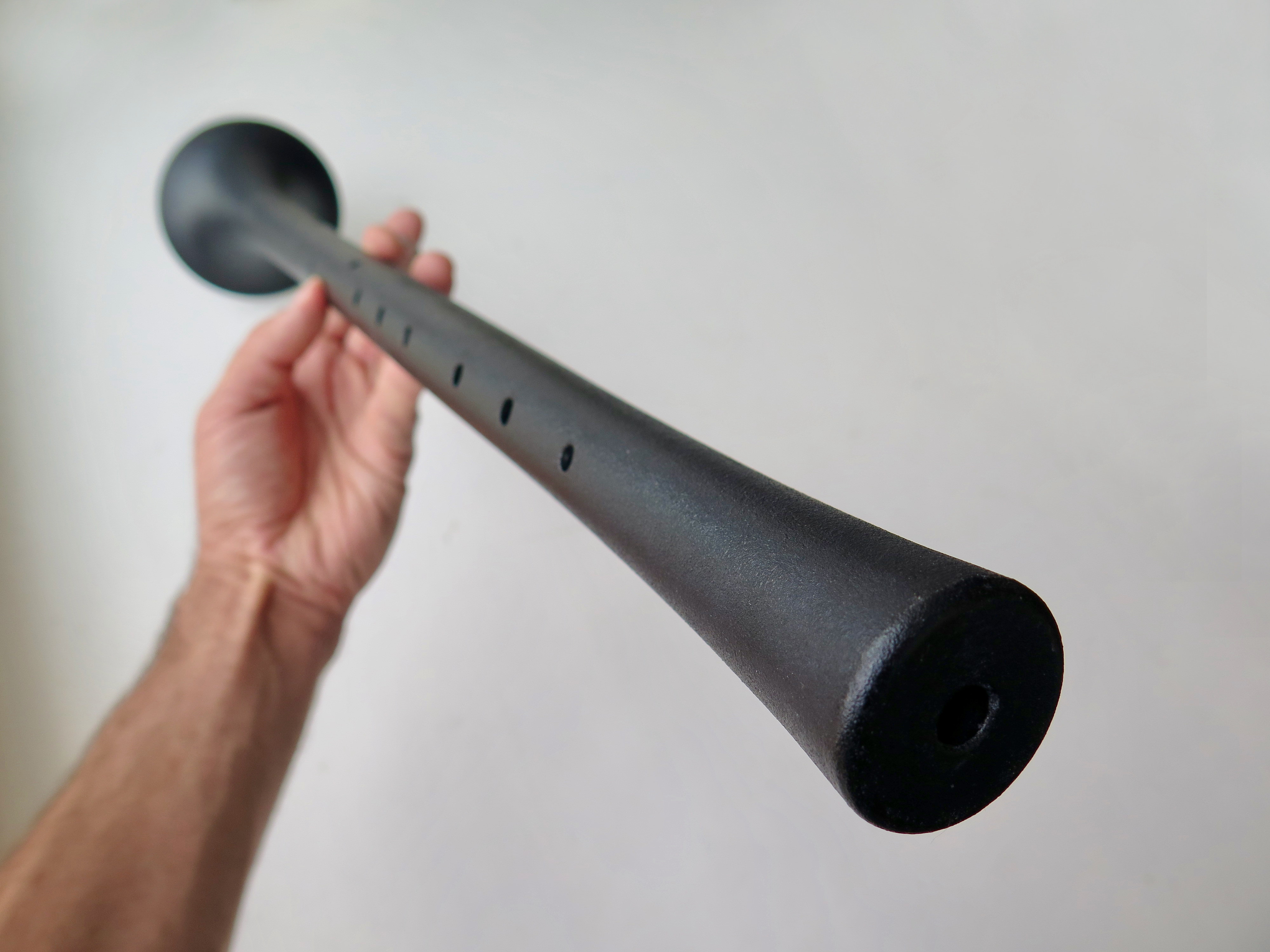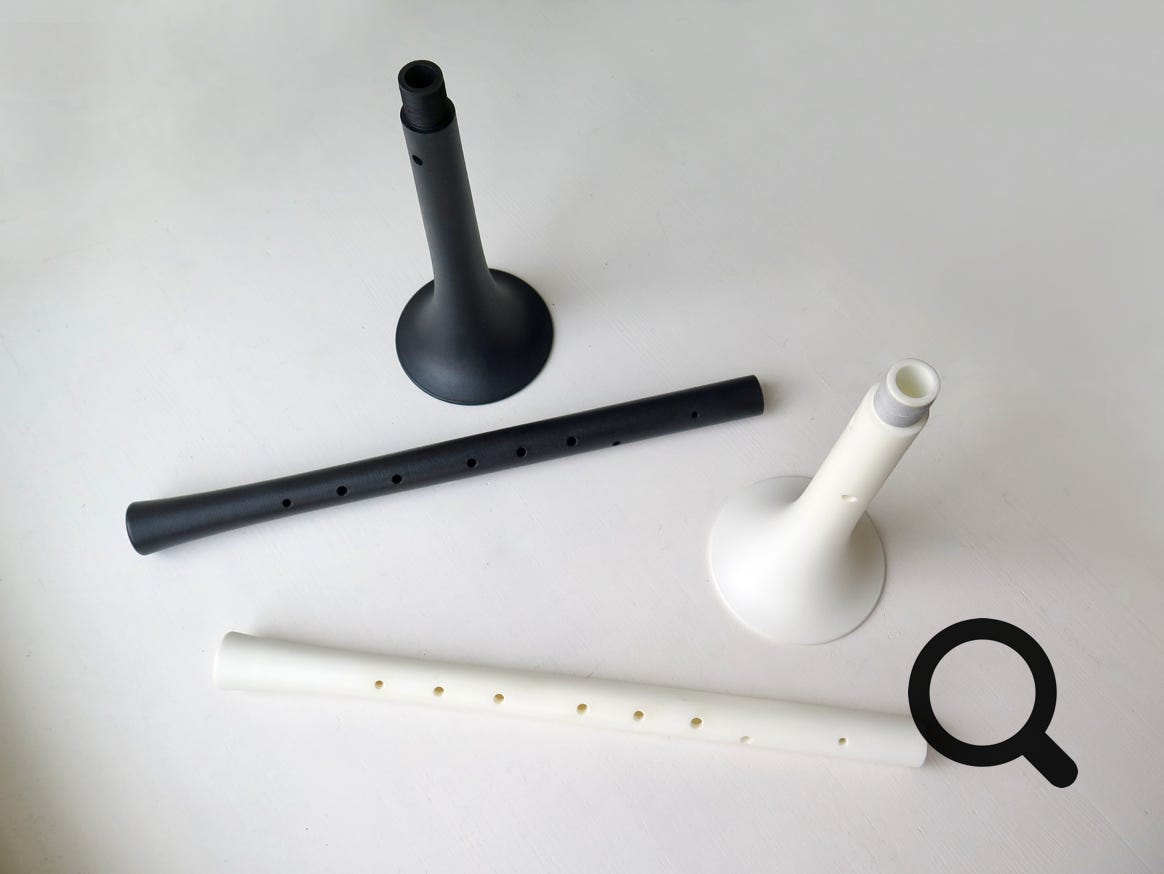 Our shawm model are made in two pieces with a joint, which is very practical to carry. The weight of the instrument, by clever use of 3D-printed possibilities, is also considerably lighter than most traditional wooden versions, which notoriously increases playing comfort.